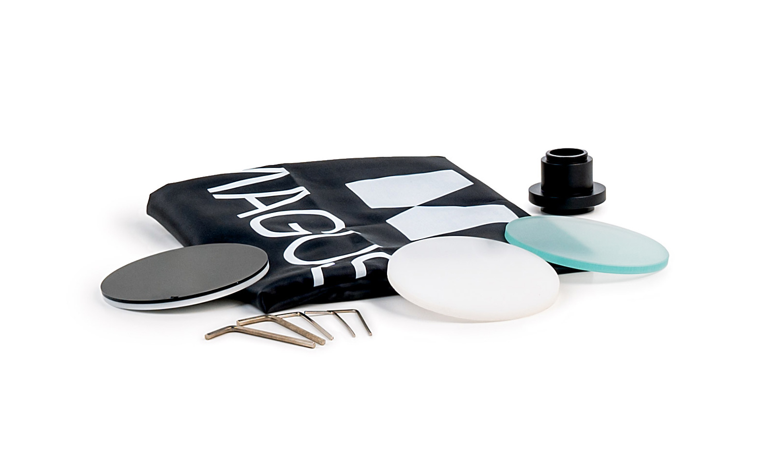 В стереомикроскопе вставка в основание служит для размещения образца, поэтому MAGUS проектирует вставки для разных исследуемых объектов с учетом типа используемого освещения и метода контраста. Прозрачная вставка полностью пропускает весь поступающий от осветителя свет, матовая вставка рассеивает свет, а с помощью черно-белой вставки становится проще получить контрастное изображение прозрачного образца.